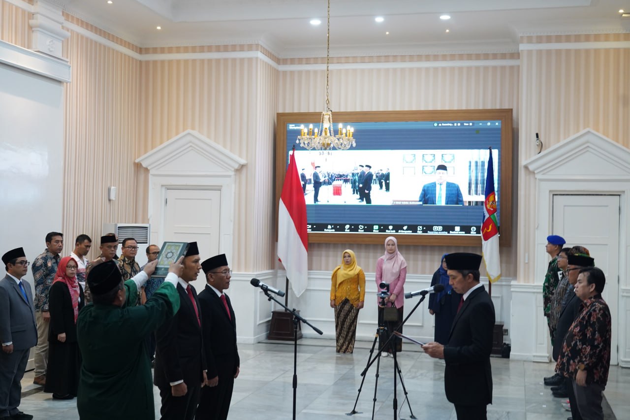 HUMPROOUB – Ketua DPRD Kota Bogor, Dr. Adityawarman Adil, menghadiri prosesi pelantikan dua direksi baru Perumda Tirta Pakuan Kota Bogor yang berlangsung di Aula Sri Bima, Balai Kota Bogor, pada Jumat 27 Maret 2026.