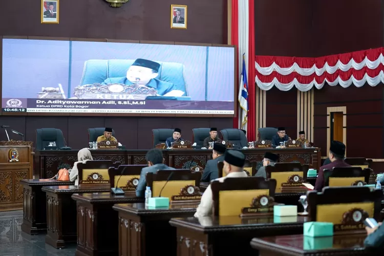 Rapat paripurna tersebut dipimpin langsung oleh Ketua DPRD Kota Bogor, Dr. Adityawarman Adil, S.Si., M.Si., dan dihadiri oleh Wakil Wali Kota Bogor, Sekretaris Daerah Kota Bogor, unsur Forum Koordinasi Pimpinan Daerah (Forkopimda), pimpinan dan anggota DPRD, jajaran Pemerintah Kota Bogor, serta para undangan.